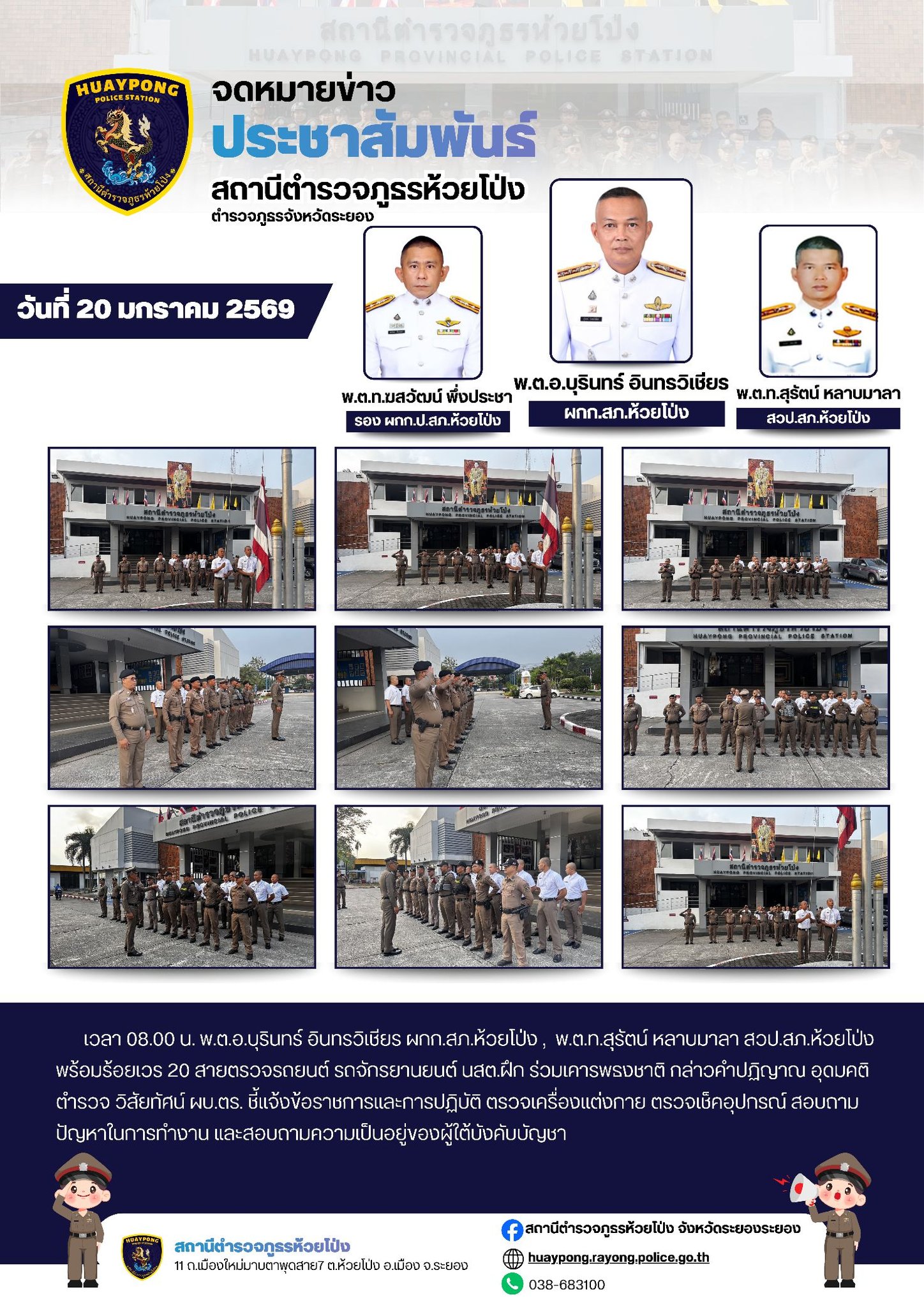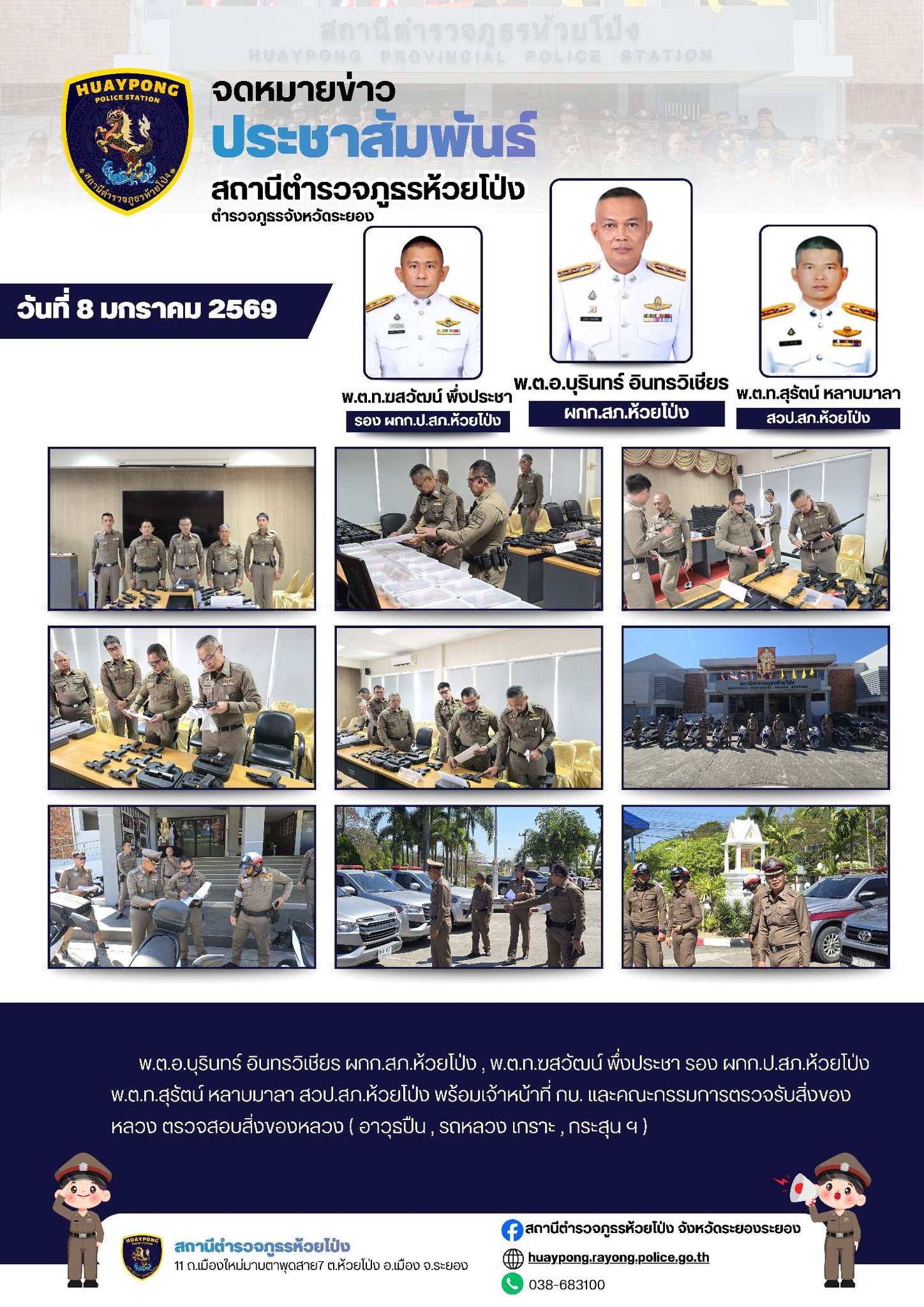 วันที่ 25 มี.ค.68 เวลา 10.00 น. •พ.ต.อ.ตรงศักดิ์ เพชรหาญ ผกก.สภ.ห้วยโป่ง •พ.ต.ท.เจริญ ชัยชะนะ รอง