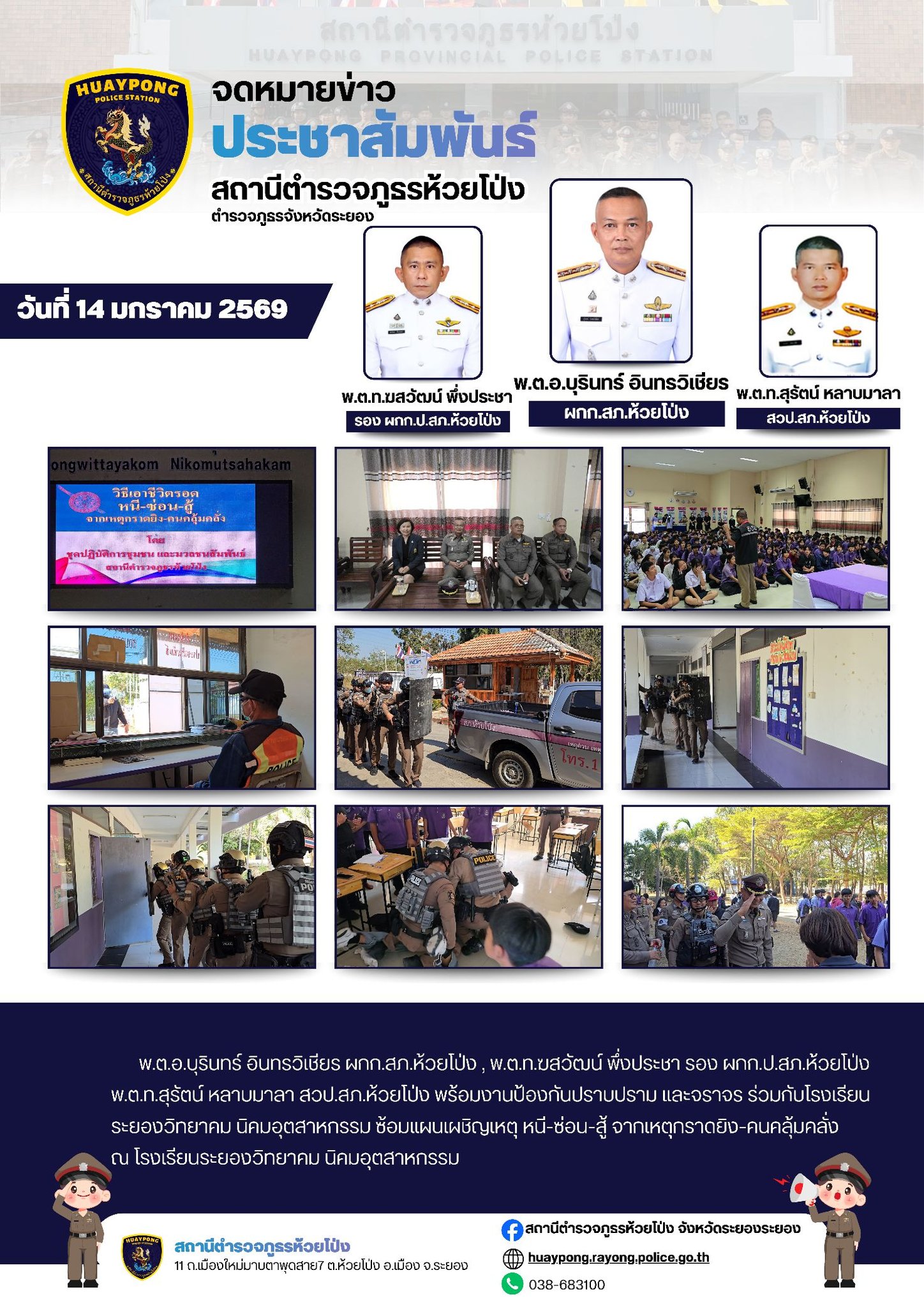 ซ้อมแผนเผชิญเหตุ หนี-ซ่อน-สู้!!! วันนี้ ( 14 ม.ค.69 ) เวลา 13.30 น. พ.ต.อ.บุรินทร์ อินทรวิเชียร ผกก.