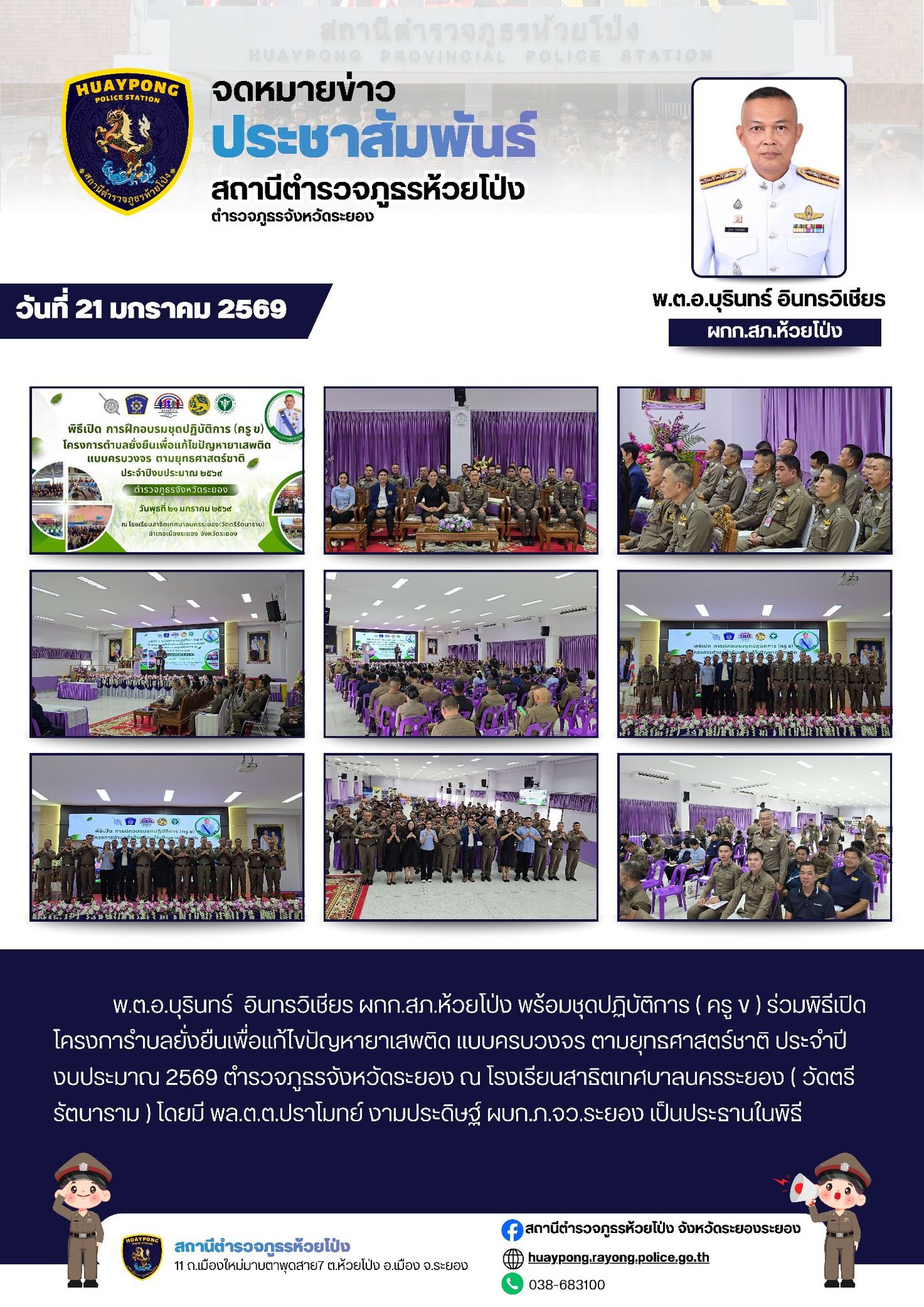 โครงการตำบลยั่งยืนเพื่อแก้ไขปัญหายาเสพติด วันนี้ ( 21 ม.ค.69 ) เวลา 09.00 น. พ.ต.อ.บุรินทร์ อินทรวิเ