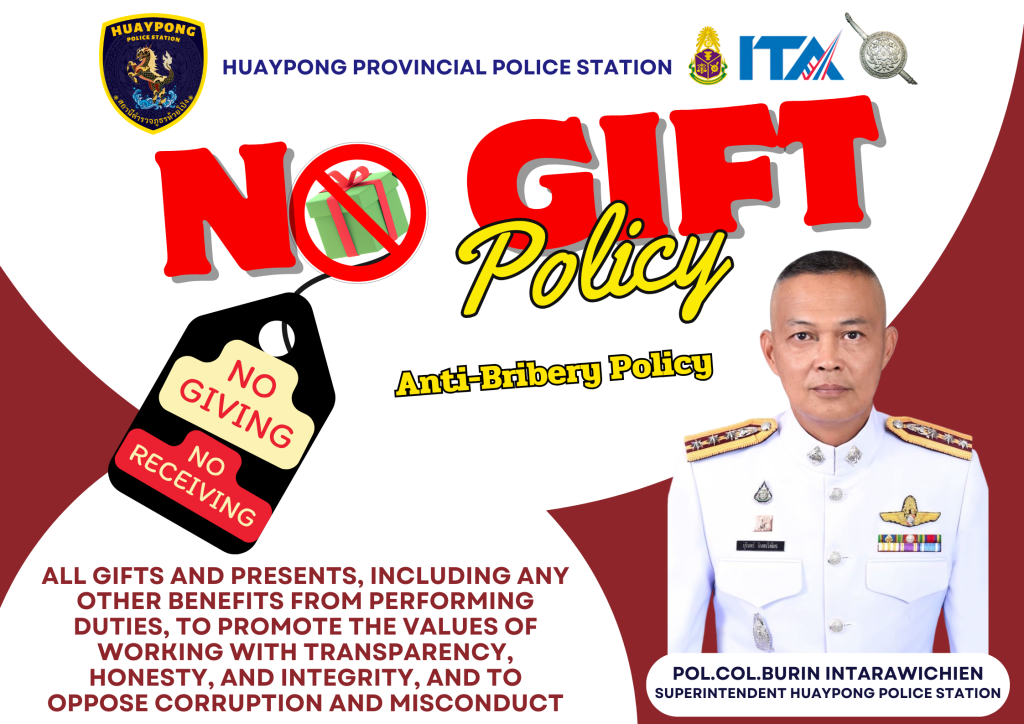 สถานีตำรวจภูธรห้วยโป่ง ต่อต้านการรับ สินบ น (Anti-Bribery Policy)