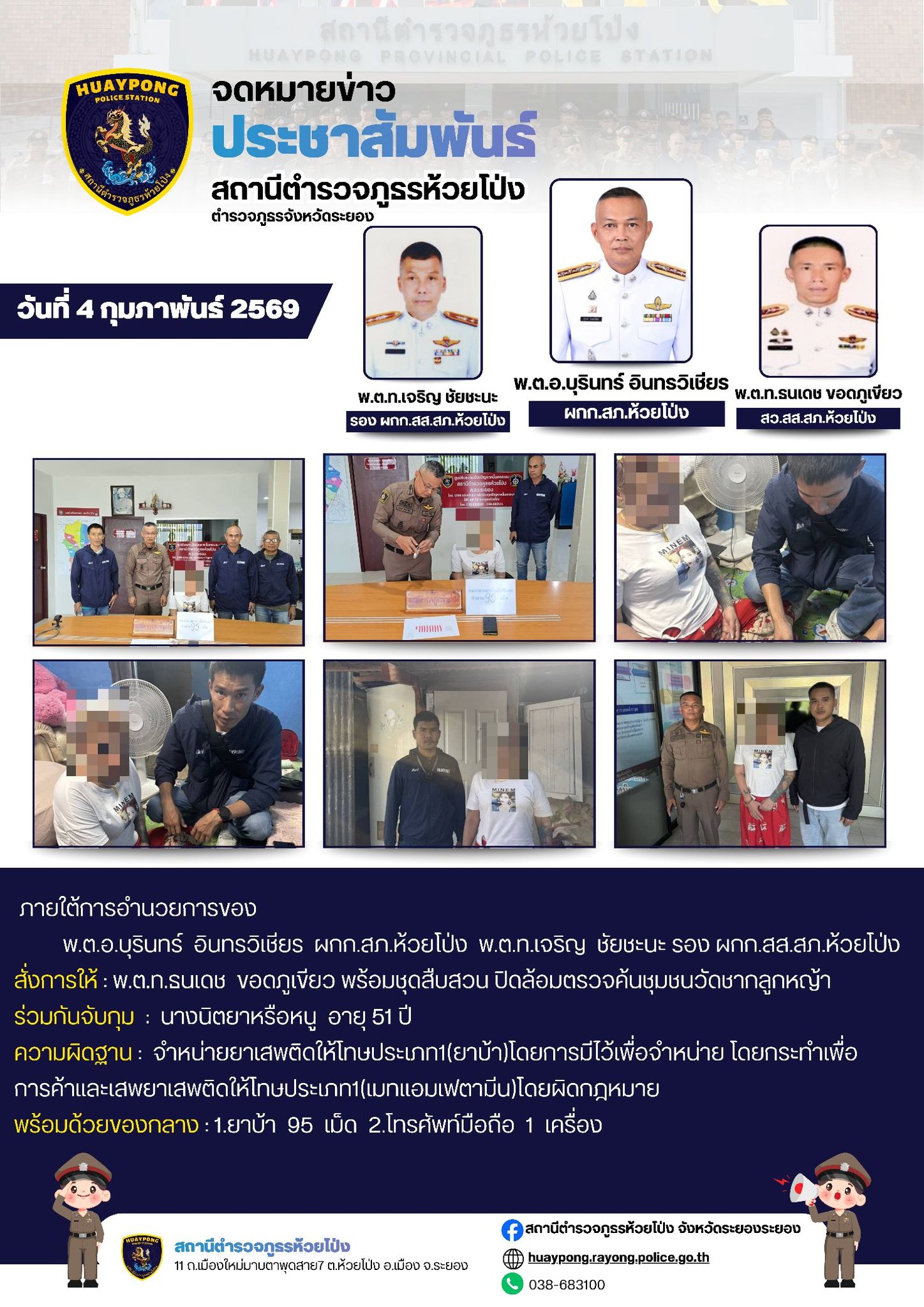 ผลการปิดล้อมตรวจค้นและจับกุมยาเสพติด วันที่ 4 กุมภาพันธ์ 2569 ภายใต้การอำนวยการของ พ.ต.อ.บุรินทร์ อิ