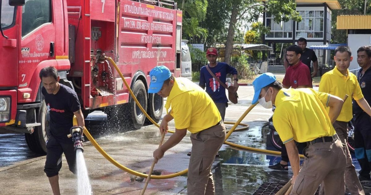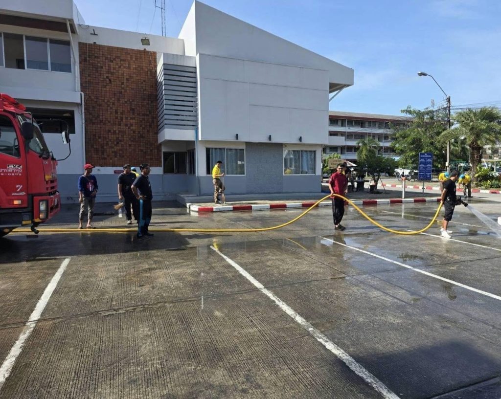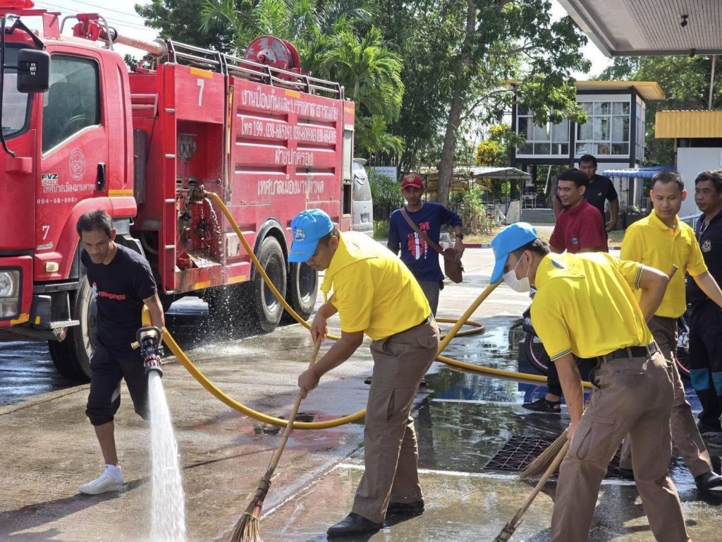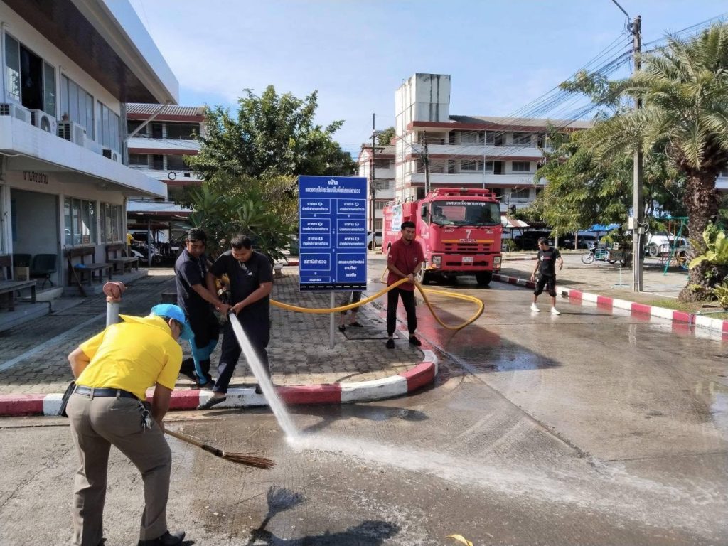 6.ผลการปฏิบัติ: บริเวณถนนโดยรอบ สภ.ห้วยโป่ง มีความสะอาด และช่วยลดฝุ่น PM 2.5 เป็นไปด้วยความเรียบร้อย