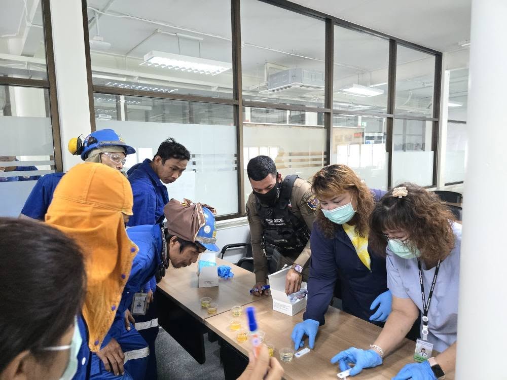 พร้อมด้วยชุดปฏิบัติการชุมชนยั่งยืน ชุดสืบสวน งานป้องกันปราบปราม งานจราจร ร่วมกับ สาธารณสุขอำเภอ ปกครองเมืองระยอง เทศบาลเมืองมาบพุด ประธานชุมชนวัดชากลูกหญ้าร่วมกันตรวจปัสสาวะหาสารเสพติดในโครงการระยองโมเล ณ บริษัทดีไลน์ ต.ห้วยโป่ง อ.เมือง จ.ระยอง