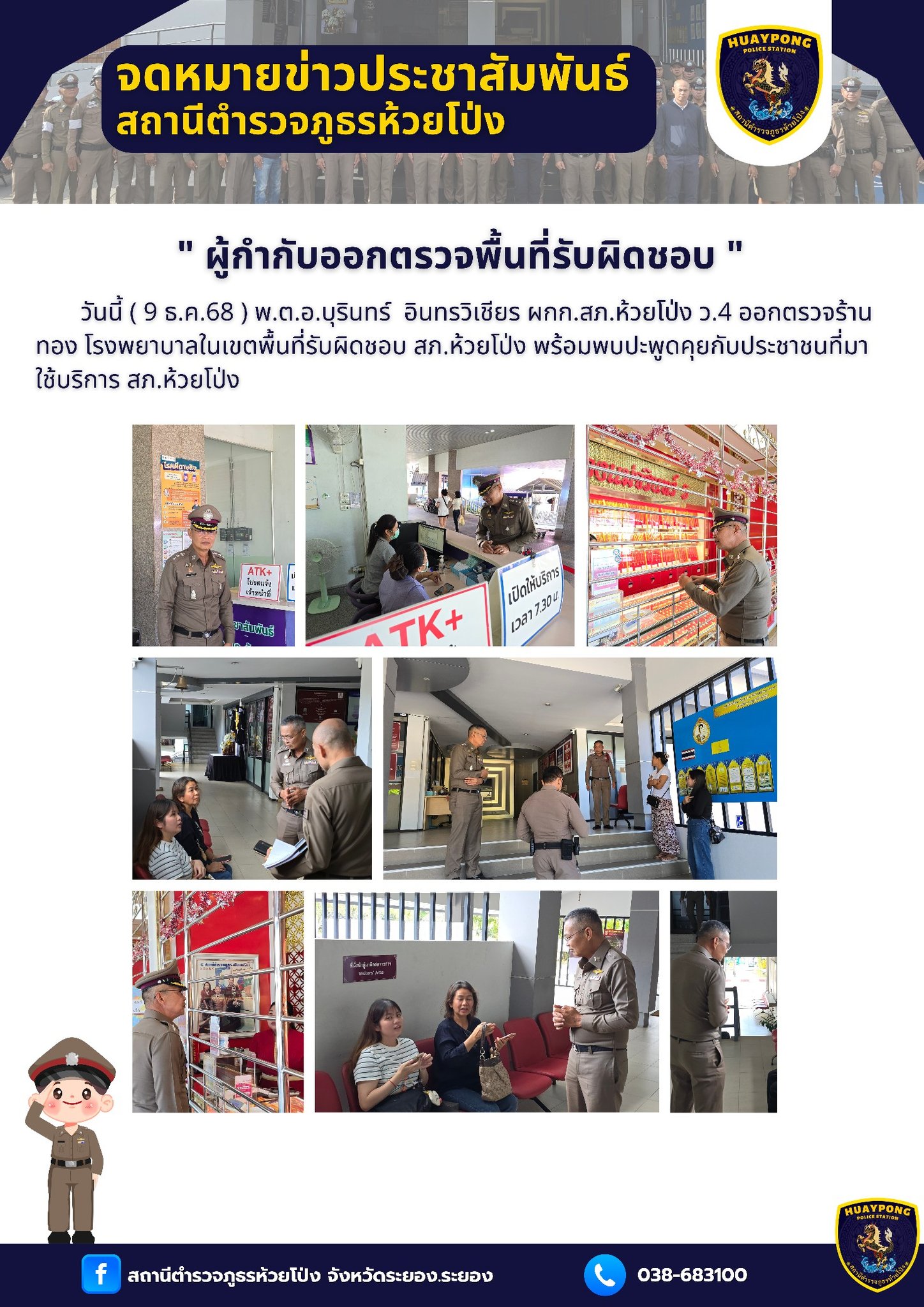ว.4 ออกตรวจร้าน ทอง โรงพยาบาลในเขตพื้นที่รับผิดชอบ สภ.ห้วยโป่ง พร้อมพบปะพูดคุยกับประชาชนที่มาใช้บริการ สภ.ห้วยโป่ง