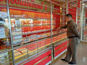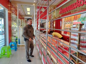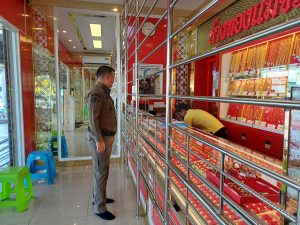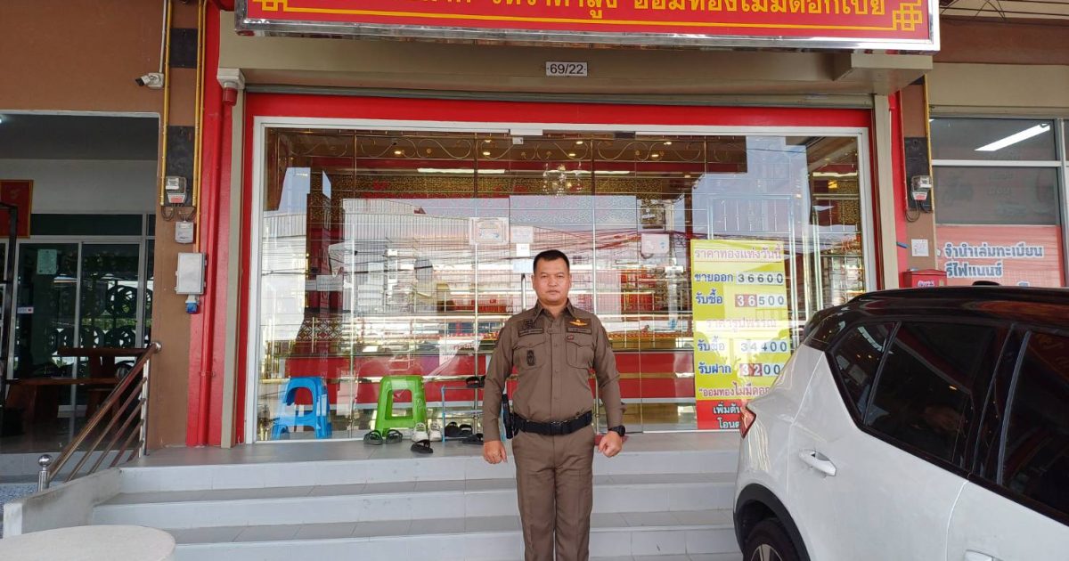 พ.ต.อ.ตรงศักดิ์ เพชรหาญ ผู้กับการสถานีตำรวจภูธรห้วยโป่ง จังหวัดระยอง ปฏิบัติหน้าที่ตรวจป้องกันเหตุ ร้านทองแม่จรินทร์ 5