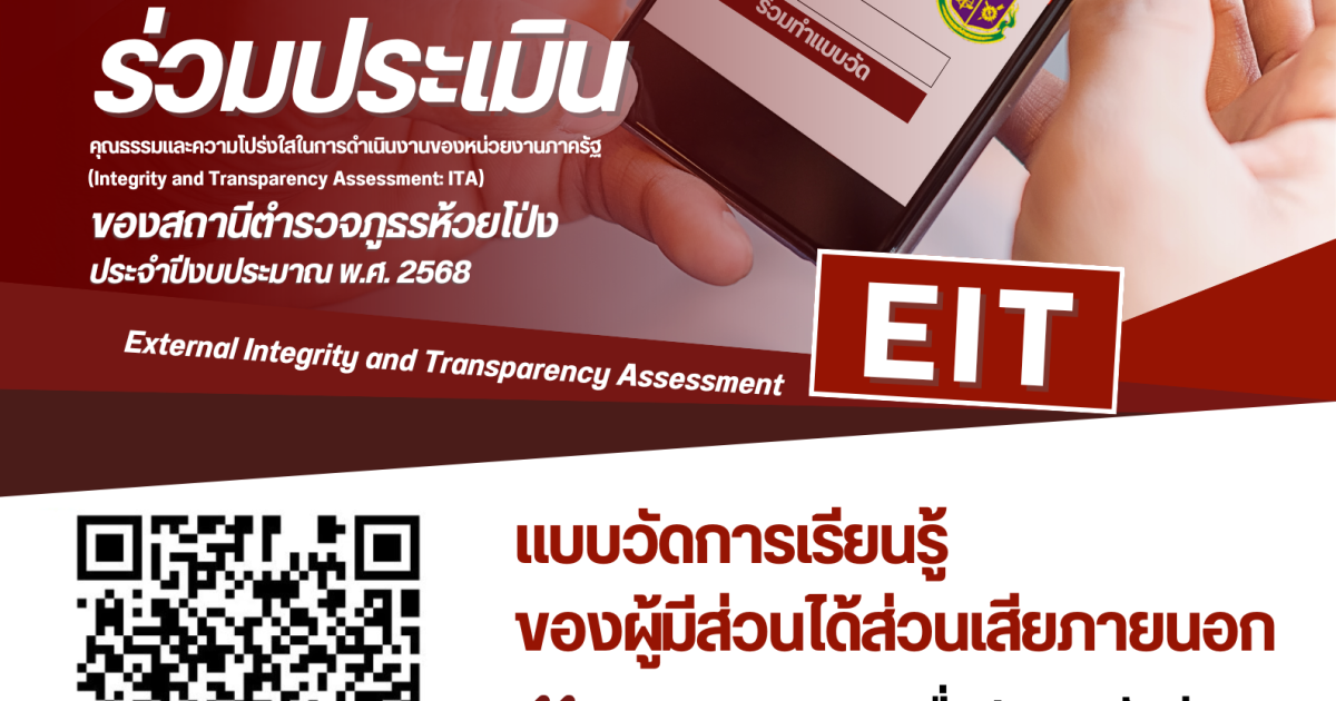 📣ขอเชิญผู้มารับบริการ หรือผู้มาติดต่อราชการ ร่วมประเมินคุณธรรมและความโปร่งใสในการดำเนินงานของหน่วยงานภาครัฐของ สถานีตำรวจภูธรห้วยโป่ง👮‍♂️