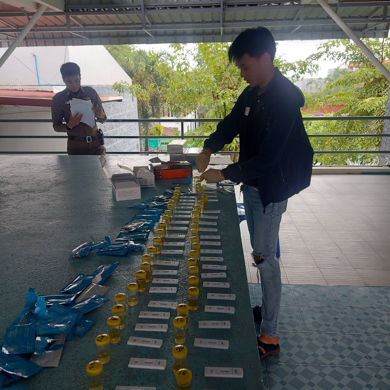ข้าราชการตำรวจ สภ.ห้วยโป่ง ร่วมกันตรวจหาสารเสพติดในร่างกายของข้าราชการตำรวจ สภ.ห้วยโป่ง ประจำปีงบประมาณ 2567