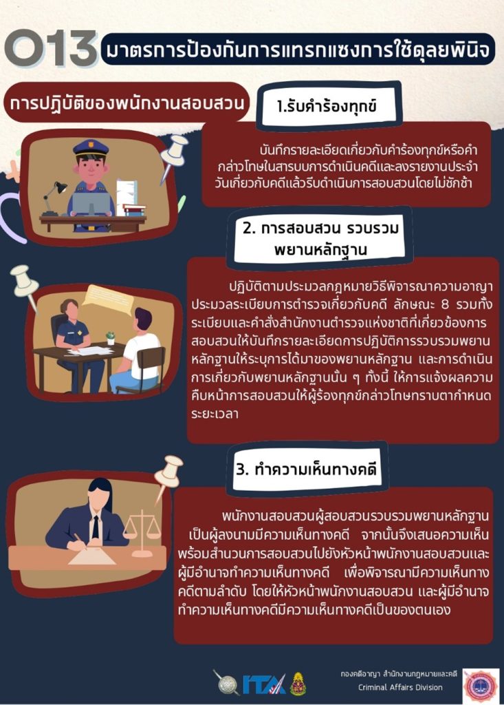 – คำสั่งหัวหน้าคณะรักษาความสงบแห่งชาติ ที่ ๗/๒๕๕๙ เรื่อง กำหนดตำแหน่งของข้าราชการตำรวจซึ่งมีอำนาจหน้าที่ในการสอบสวน