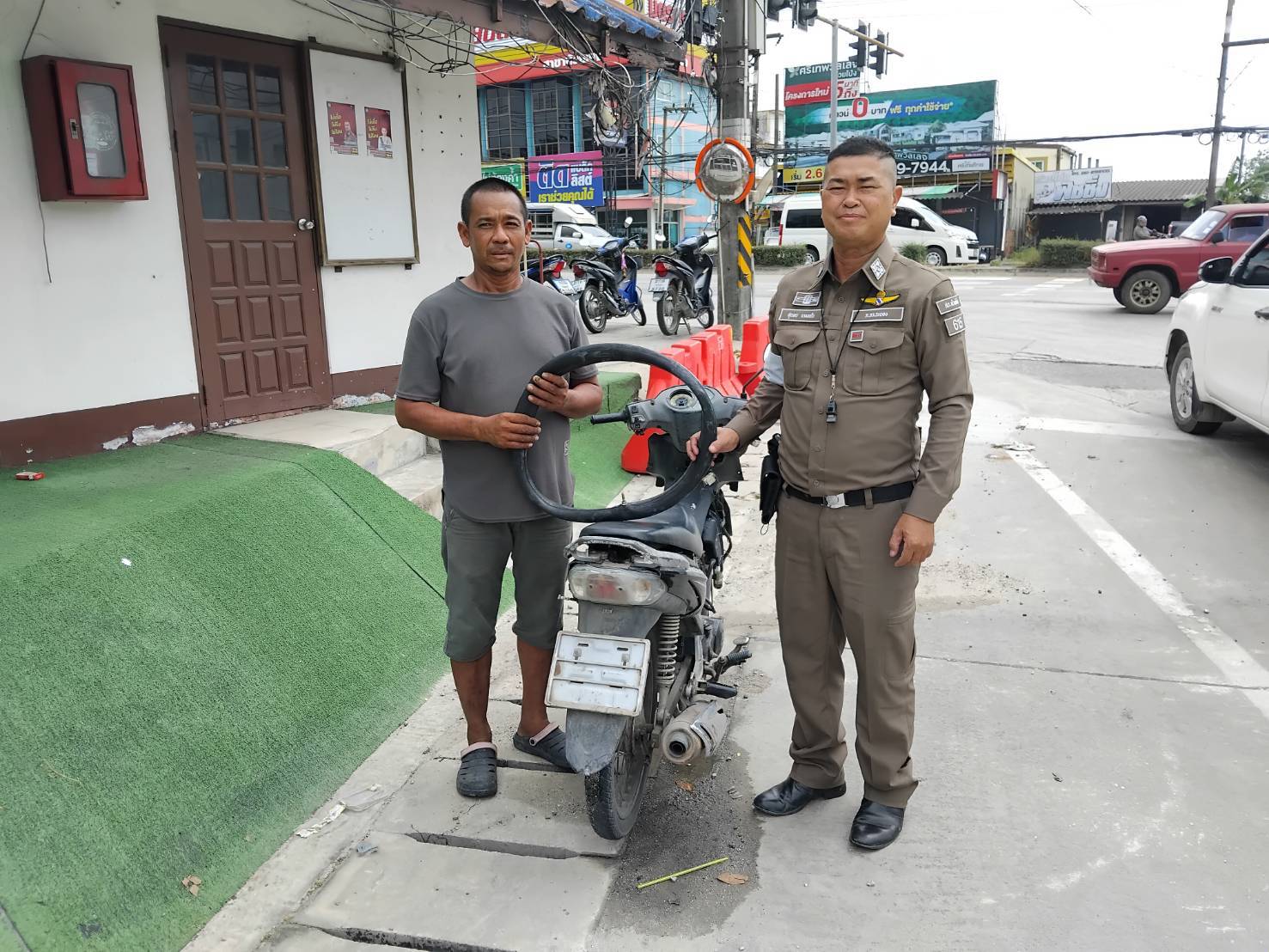 จราจรห้วยโป่ง 615 ช่วยเหลือประชาชน รถจยย.ยางแตกรั่ว