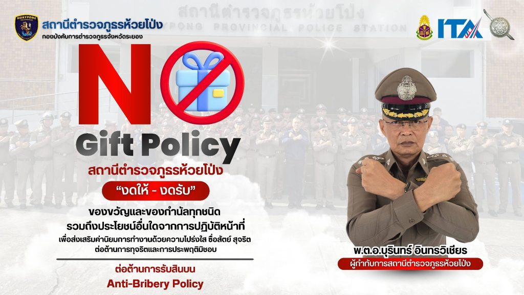 โปร่งใสเป็นรูปธรรม! ตำรวจห้วยโป่งร่วม ประกาศ NO Gift Policy ต่อต้านการทุจริต